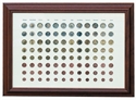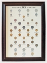 Cornice in legno, completa di pannello fustellato con nomenclatura per ciascuna delle 43 monete.
