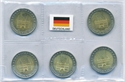 Multitasca per le 5 monete da 2 Euro per le cinque zecche differenti della Germania con bustina di protezione. Confezione 25 pezzi. |